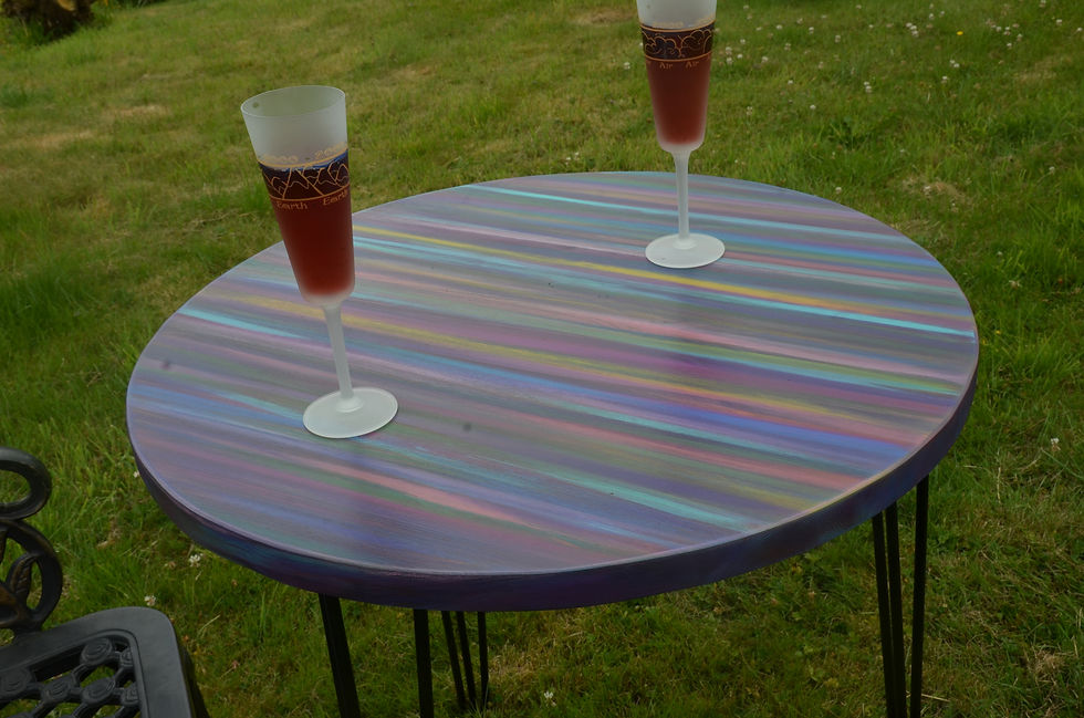 Outdoor Candy Stripe Bistro Table 70 cm Round with Black Metal Hair Pin Legs