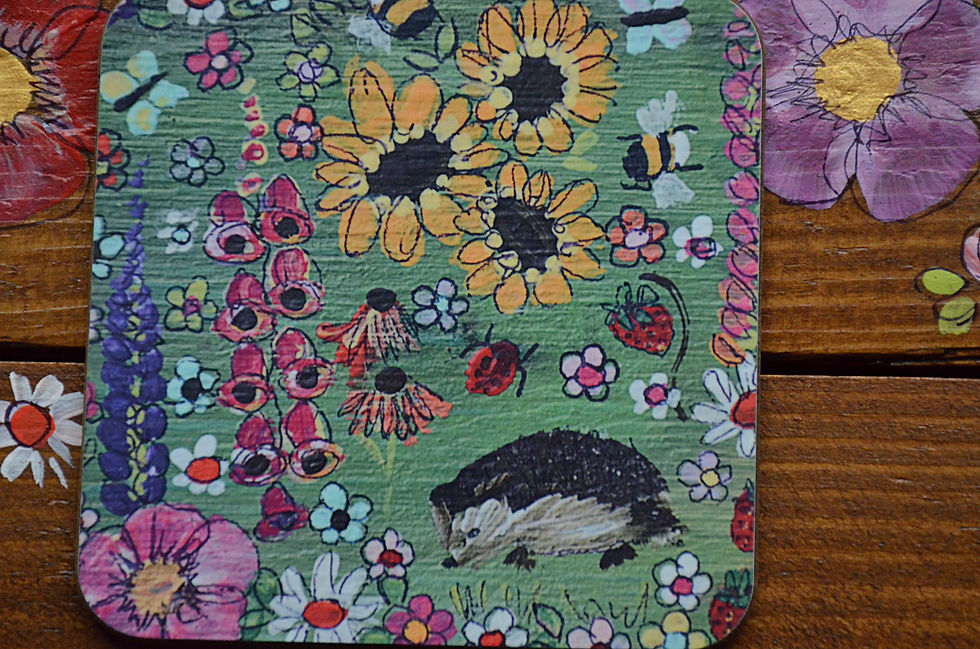 Set of 4 Unique Coffee Table Coasters Printed with our Cottage Garden Design